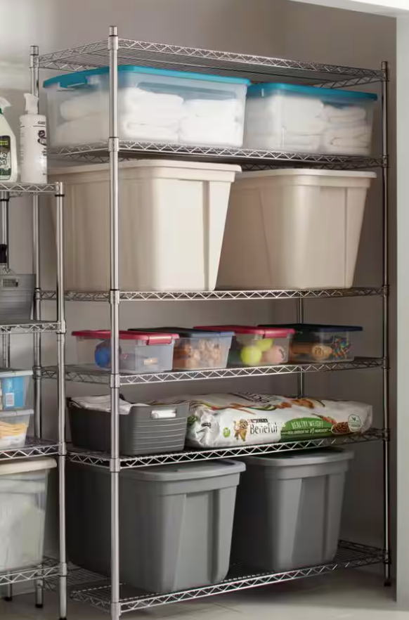 This easy-to-assemble 6-Shelf Decorative Wire Chrome Finish Commercial Shelving Unit from HDX provides storage space for any room and purpose including commercial, industrial and residential use. The 6-tier shelving unit is made of tubular steel and wires coated with a durable chrome finish. All shelf heights are easily adjustable and the unit can be assembled without any tools. Each shelf holds up to 850 lbs. when evenly distributed and features a total unit weight capacity of 5100 lbs. for optimal use in kitchens, pantries, utility rooms, warehouses and garages.